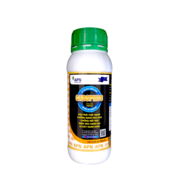 Cabophos là hợp chất gồm 3 thành phần chủ đạo là Canxi, Boron và Lân Phosphite có tác dụng hỗ trợ thụ phấn, giúp dai cuống, xanh gai và đặc biệt giúp trái tròn đều, vỏ cứng hạn chế sâu bệnh hại tấn công. Cabophos được sản xuất tại Tây Ban Nha trên dây truyền công nghệ hiện đại thế giới, giúp sản phẩm luôn đồng nhất và đạt hiệu quả cao.