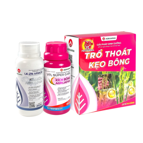 Chuyên dùng cho lúa bông đùm và trổ chậm như OM18, OM34 hay Đài Thơm. Giúp ngăn ngừa hiện lượng đơ bông (bắn máy bay) do lép vàng vi khuẩn. Phun ngừa giai đoạn trổ lẹt xẹt 3-5% lác đác bông và phun lặp lại ngay sau 5-6 ngày để đạt hiệu quả tốt nhất.